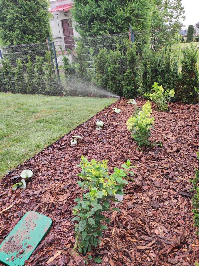 - wykonanie trawnika, rabat i instalacji nawadniania